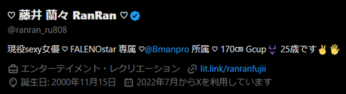 藤井蘭々さん自身のXのアカウントのプロフィール欄でGカップであることを公言しています。