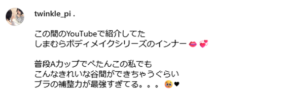 また、YupiさんのInstagramでも自身のカップ数のことをAカップであると公言しています。