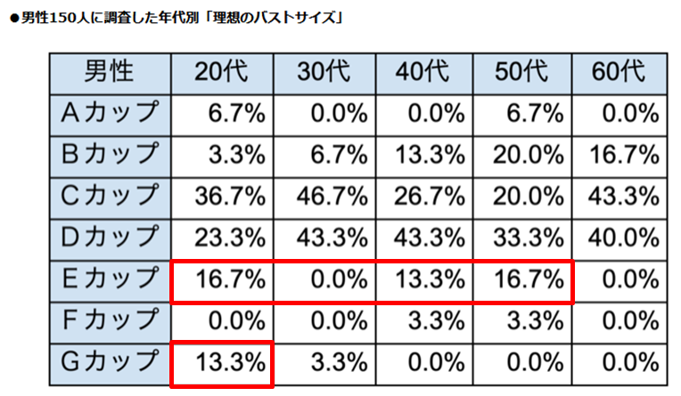 まとめると男性は女性と比較して大きめのカップ数を好む傾向があります。