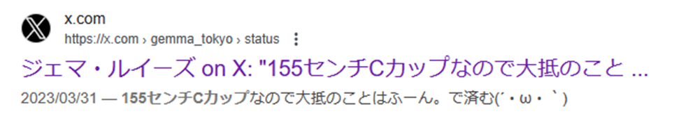 ジェマ・ルイーズさんは自身のXでCカップであることを公言しています。しかし、この投稿はアカウントがおそらく今のアカウントの前のアカウントぽいので現在は新アカウントのため、その投稿自体消去されている形になっていると思います。