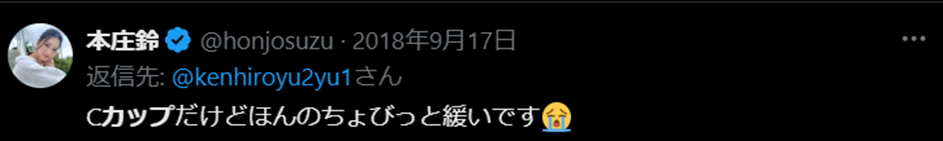 本庄鈴さん自身のXアカウントでCカップであることを公言しています。